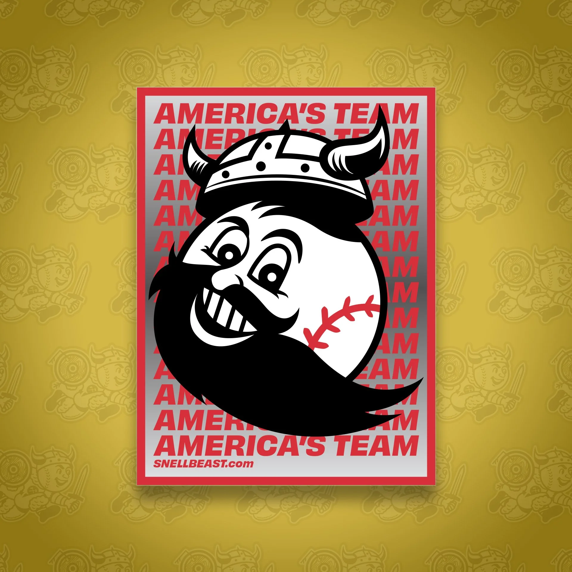 “Your Cincinnati Reds Viking Sticker made it to the official Cincinnati Reds carrying case for the Vikings cape and helmet — We Shall Vanquish All Who Challenge Us!”